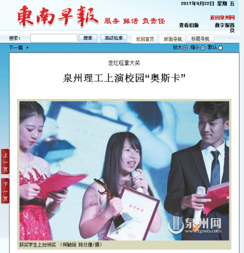 • 【东南早报】走红毯拿大奖 泉州理工上演校园“奥斯卡”