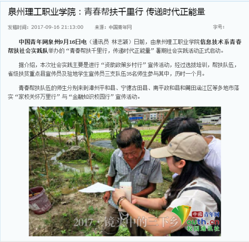 • 【中国青年网】泉州理工职业学院:青春帮扶千里行 传递时代正能量