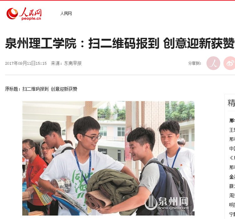 • 【人民网】泉州理工学院:扫二维码报到 创意迎新获赞