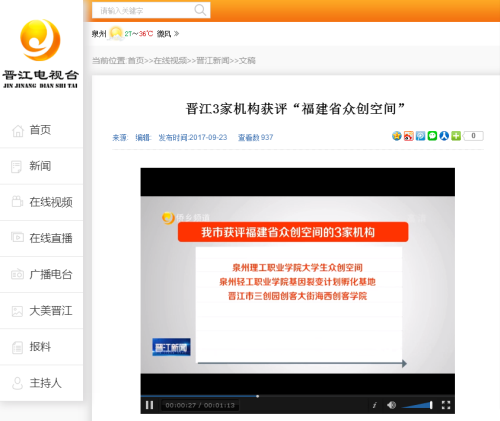 • 【晋江电视台】晋江3家机构获评“福建省众创空间”