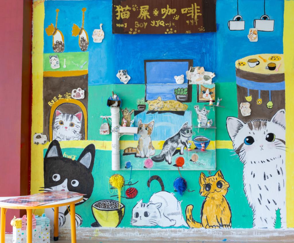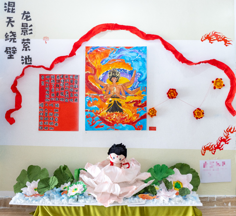 教育学院学前教育专业的同学作为参赛选手,以《3-6岁儿童学习与发展指南》为指引,将蒙台梭利“有准备的环境”、瑞吉欧“第三位老师”等国际前沿教育理念融入创作,让墙面变身会“说话”的教育场域,为大家呈现了一场“环境即课程”的沉浸式体验。