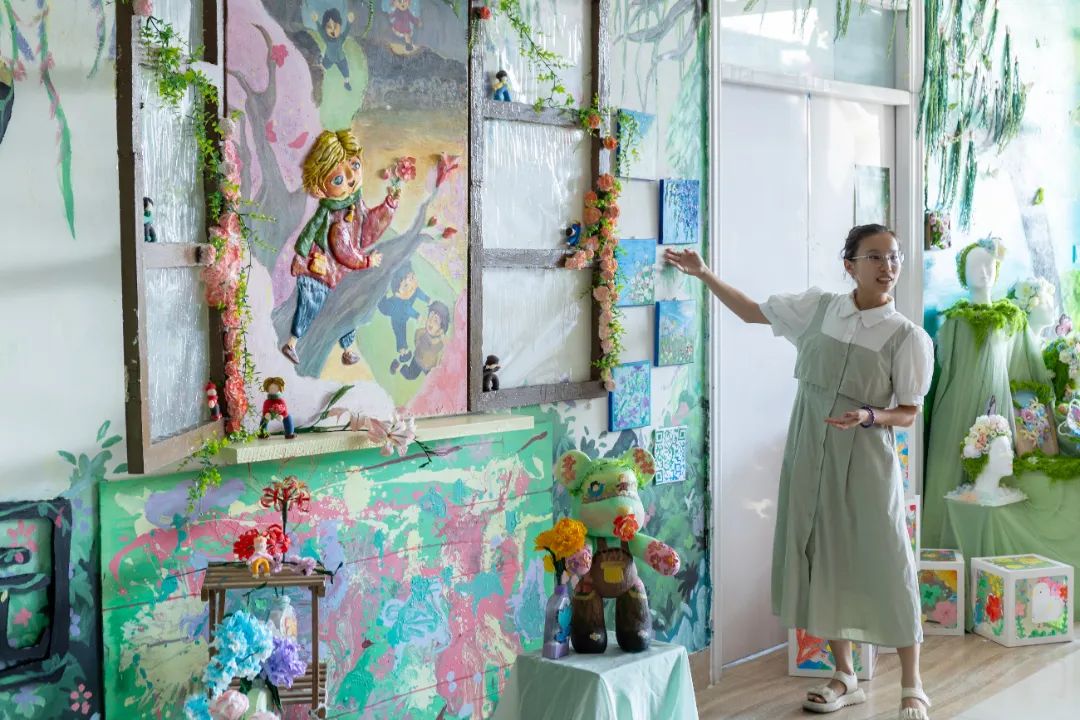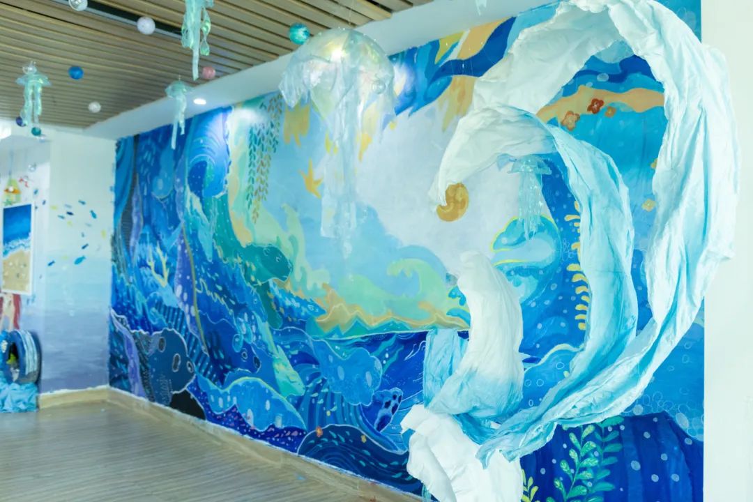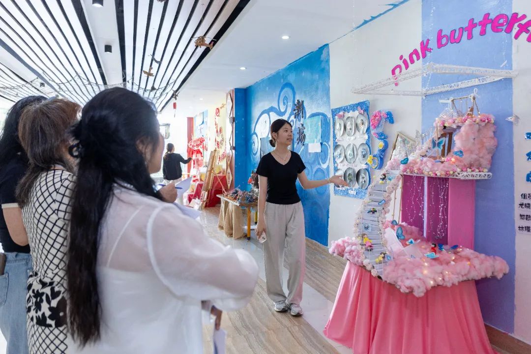 这场持续10天的展览吸引了千余名幼儿园教师、家长和师生参观。一位带着孩子观展的家长感慨:“原来墙面不只是装饰,还能讲故事、教知识。”而参展学生更在实践中完成了职业认知的蜕变,《生命之源泉》团队成员陈晓慧说:“当我们用废旧纸张制作海洋波纹时,突然明白‘环境创设’不是简单的美化,而是要让每个元素都蕴含教育意图。”