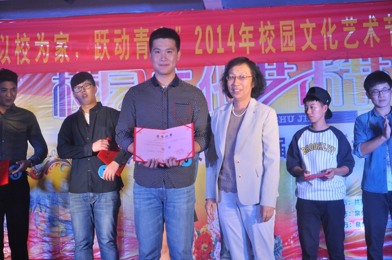 1029日晚泉州理工学院新校区礼堂歌声飞扬,座无虚席,由校团委主办,大学生艺术团、校学生会承办的“以校为家,跃动青春”2014年泉州理工学院校园文化艺术节开幕式暨“闪耀新声 律动校园”第十一届十佳歌手赛决赛在此举行。学院党委副书记黄志梅、学工处处长杨津平、招就处处长、校团委书记蔡金佩等观看了晚会。