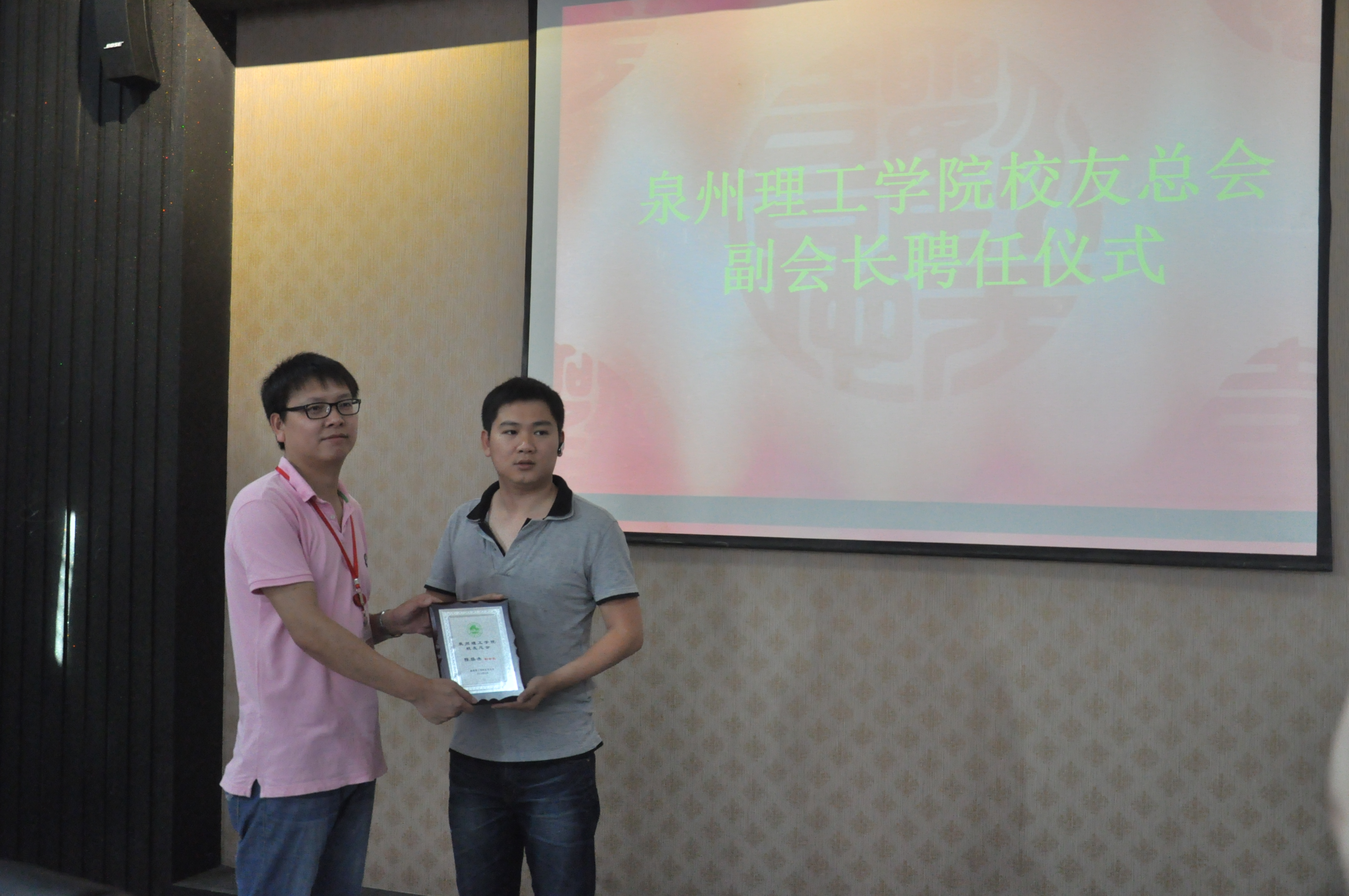 在校友总会受聘仪式上,来自泉州校友会会长余克彬、厦门的校友会会长许伟强、福州校友会会长周温艳、海南校友会会长黄志兴、广东校友会会长陈焕杰被聘为泉州理工学院校友总会副会长。泉州校友会会长余克彬说,这次被聘为学校校友总会副会长很荣幸,他希望校友们常联系,把泉州校友会建设好,大家要为学校的建设多提意见,让校友会、母校发展得更好。
