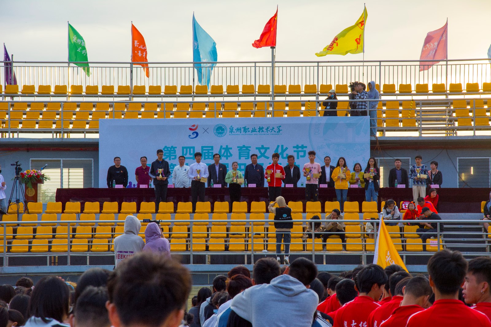 11月13日下午4点,随着30*60团体接力赛在一片加油声与欢呼声结束,我校第四届体育文化节暨第十五届田径运动会划上了圆满的句号。学校董事长吴金营,党委书记傅志雄,校务顾问/校友总会会长林其天,副校长姚丹、庄文瑞、蔡金佩、林文艺,校长助理苏康敏,党委委员/中营汽车学院院长陈其生,党委委员/学工处处长杨津平等出席闭幕式。