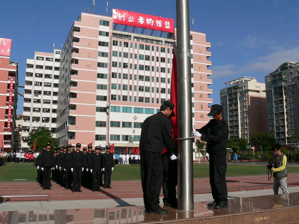 碧空万里无云,操场旗海翻彩。