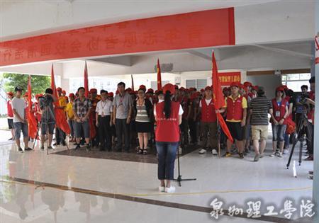 6月 20日下午校团委、青年志愿者协会举行“携手青春毕业季共创美丽新校园”泉州理工学院青年志愿者协会校园清洁行动暨志愿服务大队授旗仪式。这是我校志愿服务工作的一个重要开端,也是我校志愿服务工作朝组织化、规范化、专业化发展的重要标志。学院副校长庄文瑞、党委副书记黄志梅、学工处处长赵玉华,以及各系党团书记,志愿者代表120人参加了活动。