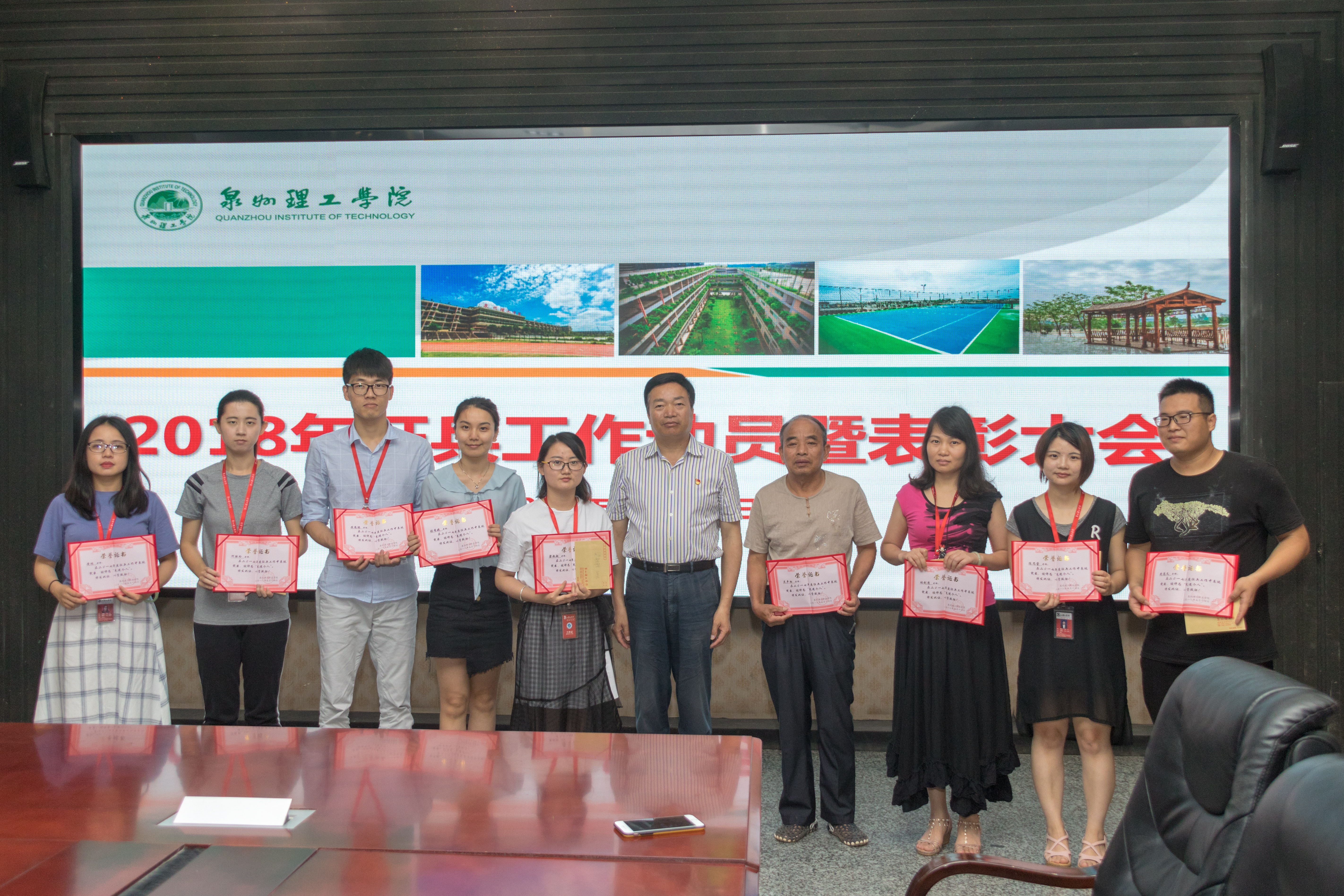 副校长庄文瑞宣读了《泉州理工职业学院关于表彰2017年征兵工作先进单位及先进个人的决定》,林其天书记为获奖单位和个人颁发了奖牌和荣誉证书。