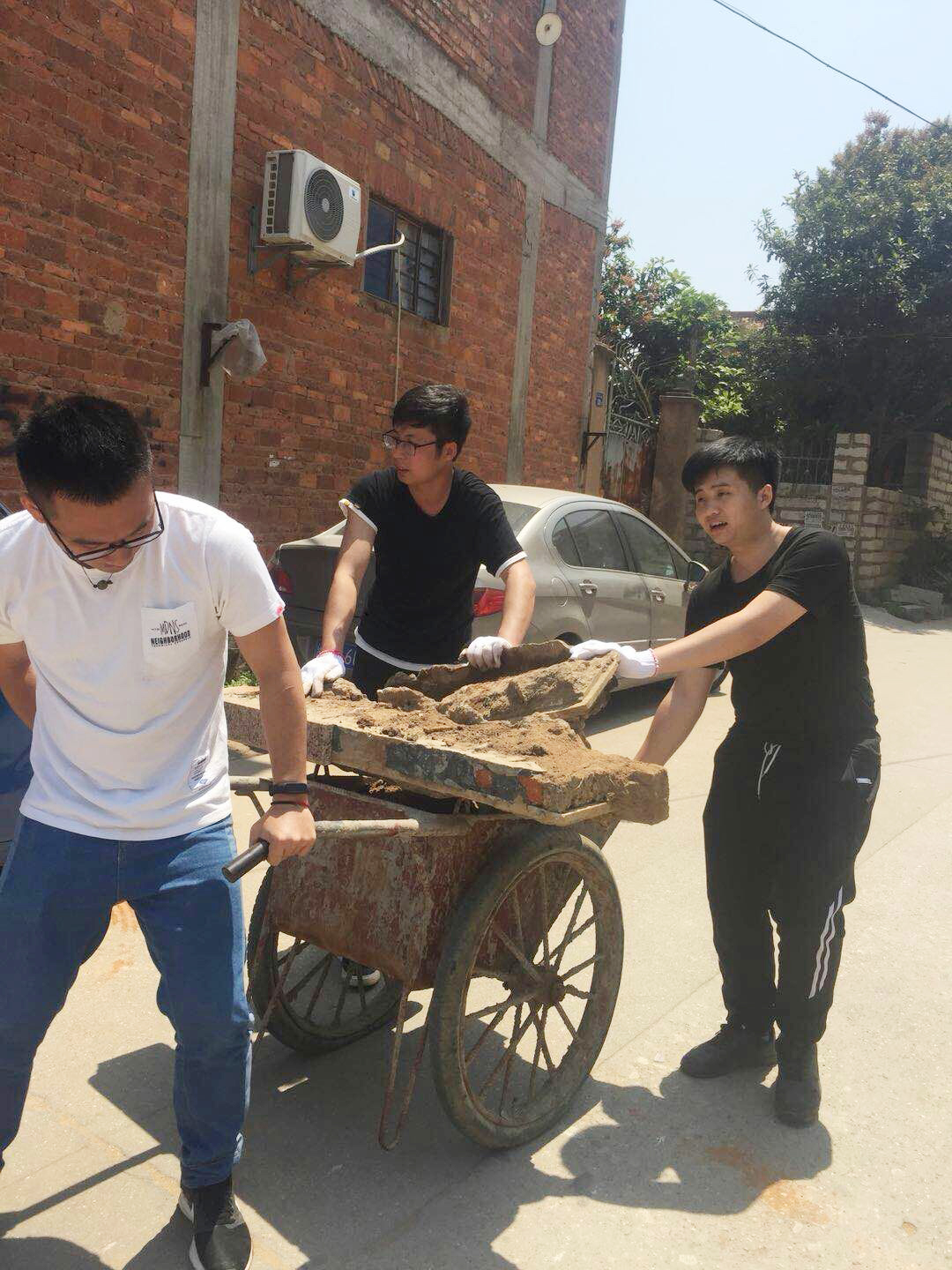 学生团队在参与施工