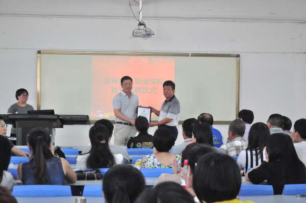 下午14时30分,我校为曹勇安教授举行校董敦聘仪式,董事长吴金营为曹勇安教授颁发董事聘书。随后,曹勇安教授就《职业教育的哲学思考—三个统一》为我校师生讲学。