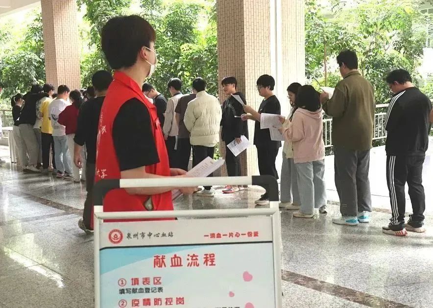 活动现场,前来献血的同学们有序排队,手持报名表,在志愿者的耐心引导下,严格按照要求完成信息填写、血压测量、抽血化验等流程,依次进入献血区排队献血。