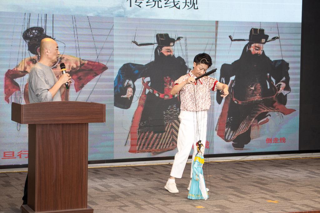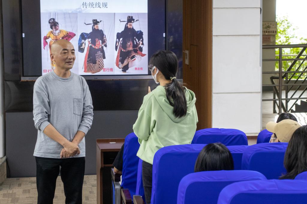 陈应鸿老师从提线木偶的由来、发展再到泉州提线木偶的形成及演化等历史娓娓道来,并为在场师生展示世界级非遗“泉州提线木偶戏”的独特艺术魅力。在与学生互动期间,陈应鸿老师结合自身教学经历,向师生阐释青年与保护传承传统文化之间的辩证关系,肯定了我校师生对于了解非遗文化的积极性。