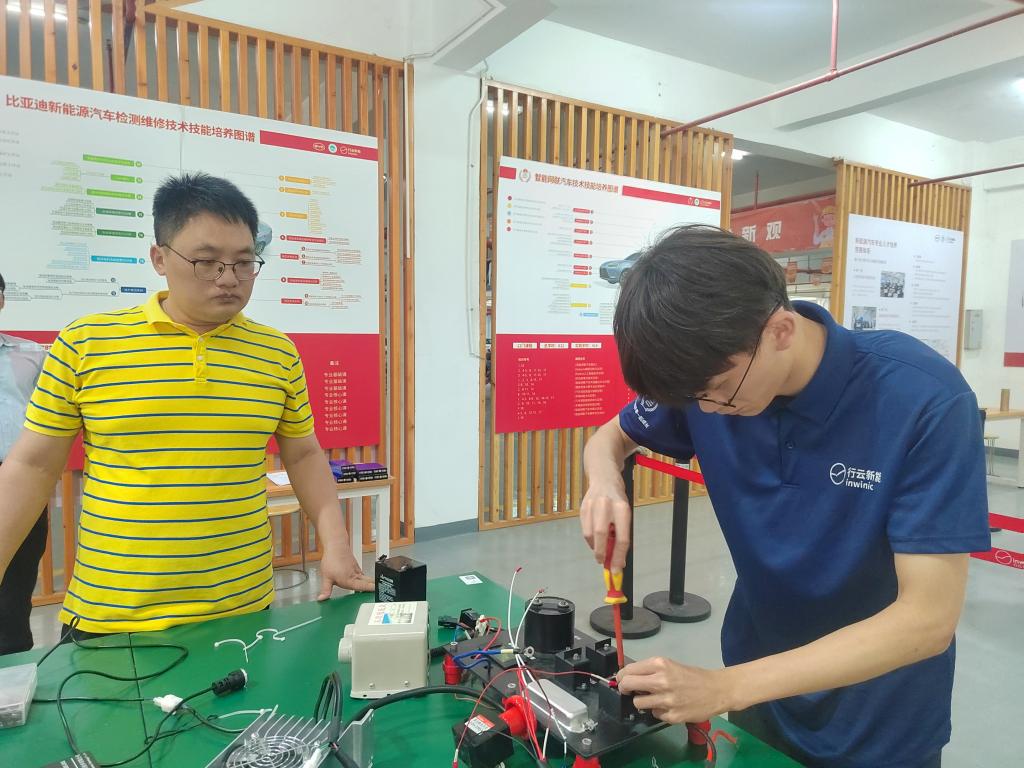 为响应职业教育周,5月29日,工学院汽车系在汽车工程中心举办泉州职业技术大学第二届“行云杯”新能源汽车技术技能大赛决赛。本次大赛通过预赛(理论考核)筛选,共有10组的20名选手进入决赛。本次比赛由泉州职业技术大学与行云新能源(深圳)科技有限公司合作共建的行云新能源汽车产业学院承办,裁判工作由行云产业学院驻校老师杨杰、王泉、赵志国、蔡会军以及工学院汽车系专业主任陈明福、专业教师郑丽萍、赖城贤、郑培森担任。