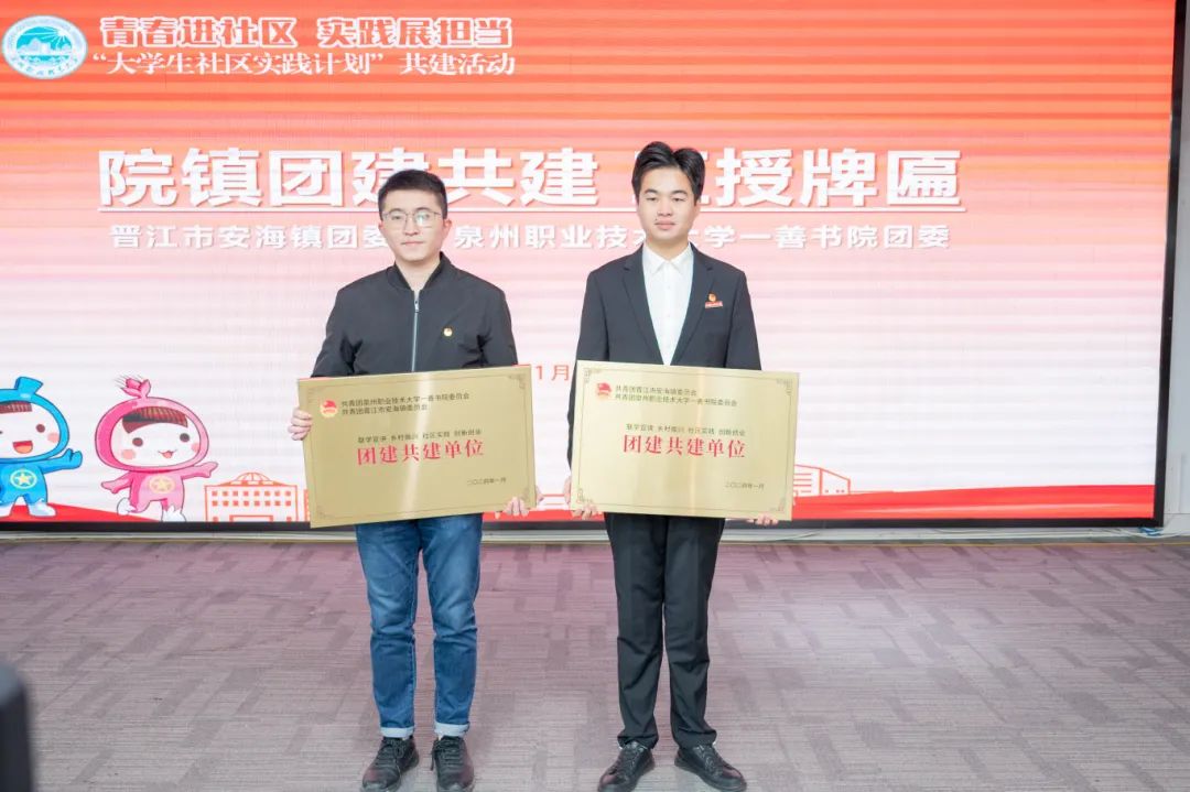 1月24日,晋江团市委与泉州职业技术大学团委联合开展“青春进社区,实践展担当”大学生社区实践计划共建活动暨首批大学生社区兼职团干聘任仪式。
