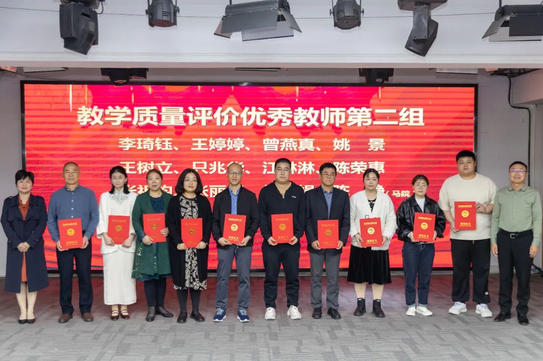 ▲ 校长助理、教务处处长苏康敏,校长助理、人事处处长王巨斌共同为在2023-2024学年第一学期教学质量评价获得优秀的教师颁奖
