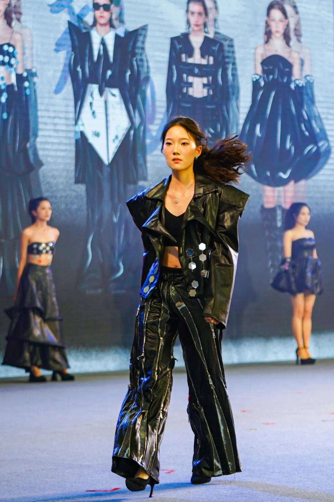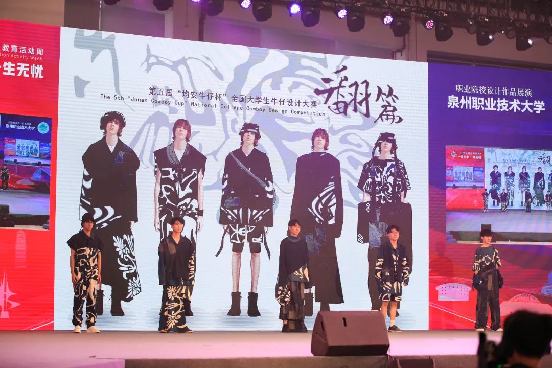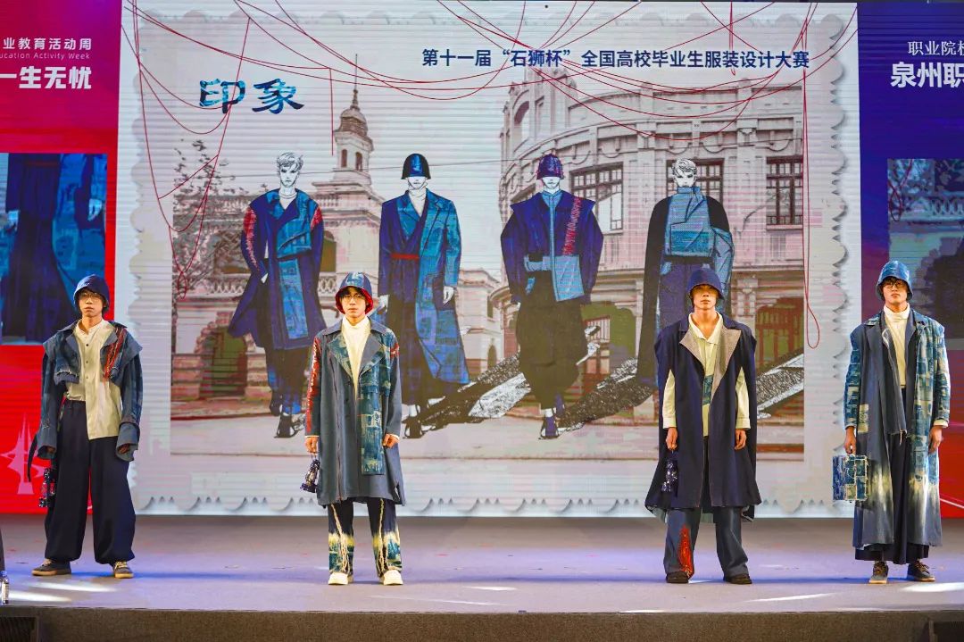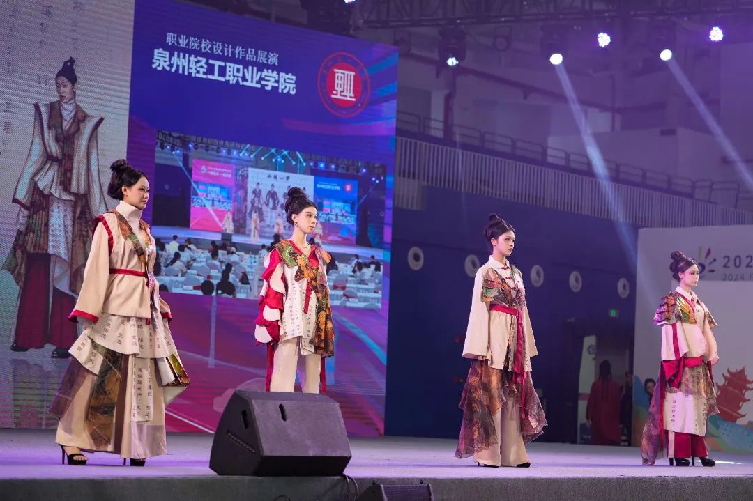 其中,泉州职业技术大学以“追忆与传承”为主题,带来6个系列作品,有传统工艺与现代牛仔面料相结合的《印象》、有未来主义风格的《她和她和她》、有中国传统戏曲元素的《霸王别姬》等;而泉州轻工职业学院以“循梦而行”为主题,带来4个系列作品,有融汇了戏剧与武术的《安心立命》、有展现错综复杂迷宫的《走出迷宫》、有借鉴于唐朝书籍装饰方式龙鳞装的《如麟一梦》等;还有来自晋江职业中专的学子带来4个主题的设计作品,有新颖前卫的《异世界》、有敦煌艺术与现代服饰融合的《云霓之裳》、有彝族服饰特色与现代服饰相碰撞的《彝》等。