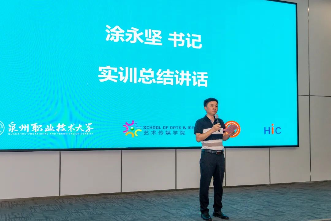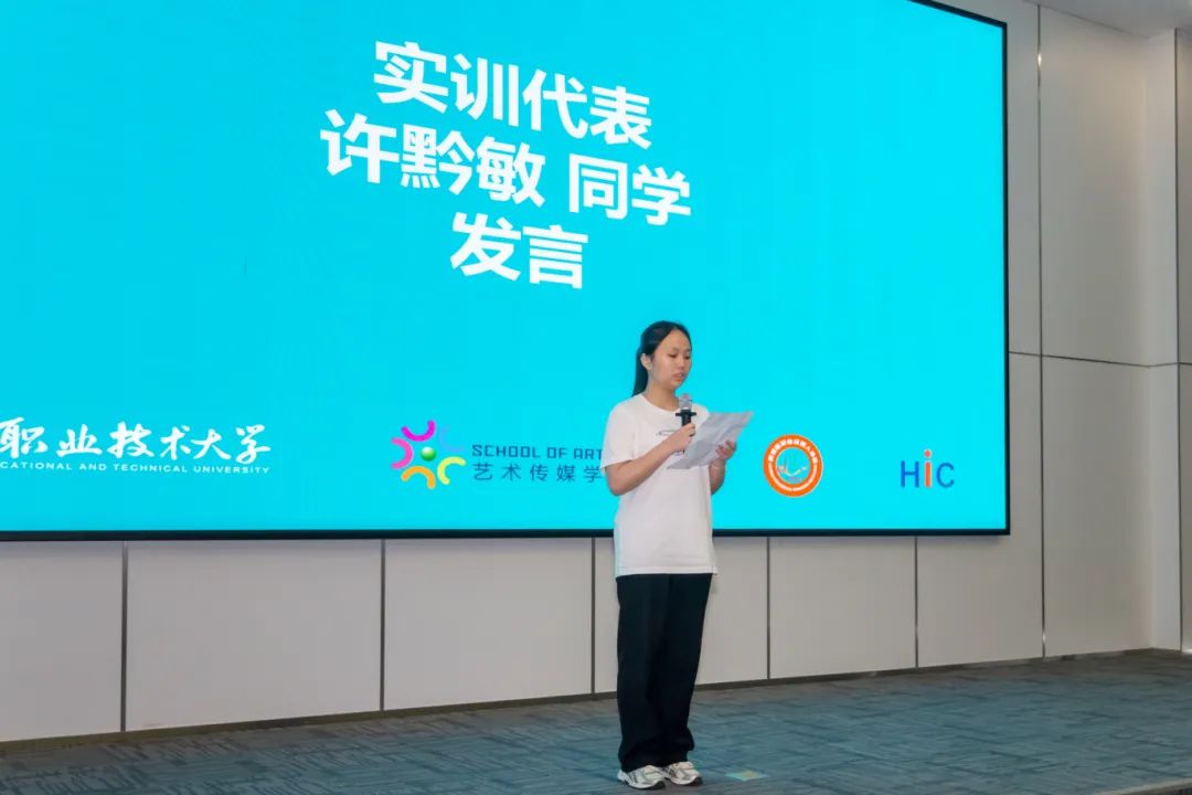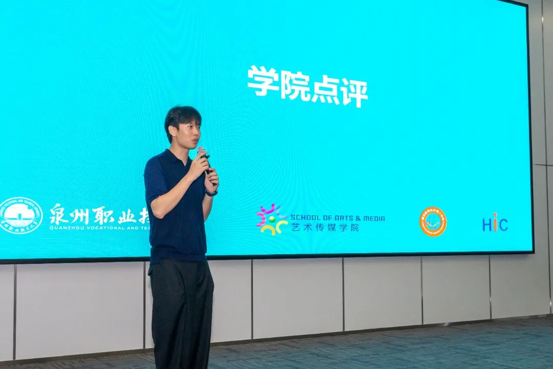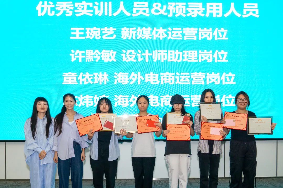 参加当天实训汇报会的有:泉州海新服装科技有限公司品牌总监黄雪胶、业务总监洪炳豪、海外市场业务总监梁妮,泉州职业技术大学艺术传媒学院书记涂永坚、服装与服饰设计专业主任李亚兰、服装与服饰设计专业营销方向教师杨子豪、学业辅导员钟荣。