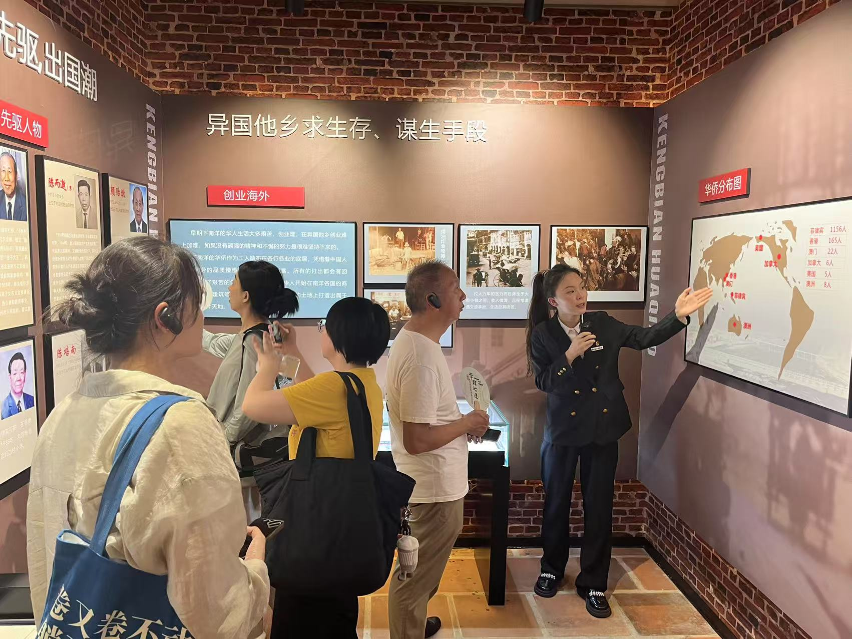 ▲ 宣讲团成员庄滢在坑边侨史馆为参观者讲解红侨文化