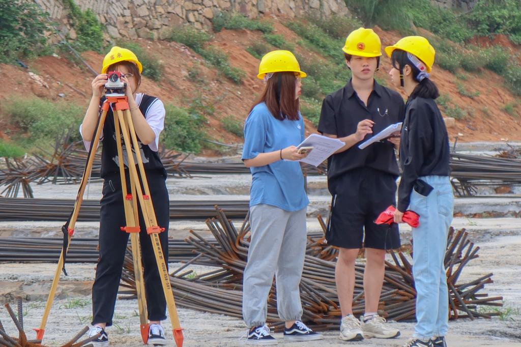 在泉大,同学们很喜欢金教授的《测量学实习》课程。每年夏天,他的实践课程,同学们都非常积极。烈日下,虽然大家备受考验,每天在工地与灰尘、泥土为伴,但是,他们却深深喜欢着这堂课。实践课上,有紧张、有压力、更有忙碌。每天一大早,他们带上测量工具就往工地里赶,有的同学甚至顾不上洗漱,只用毛巾简单擦把脸就匆匆出门。他们在工地上忙碌,用双脚和仪器展开测量,工地里几乎每个角落都留下同学们的脚印,“有时一忙碌,连一口水都忘记喝。”