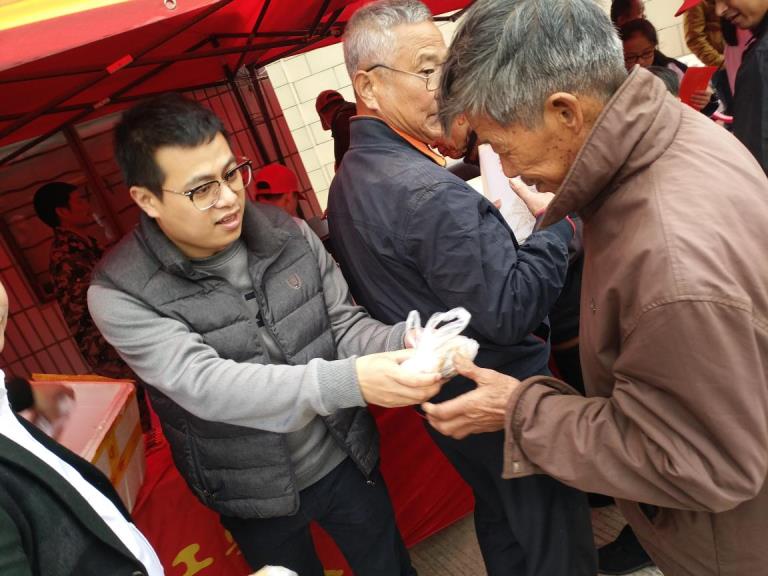 我校工学院党总支书记吴茶水向村民赠送红糖馒头