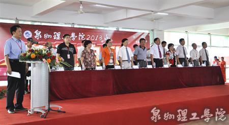 泉州理工学院董事长、党委书记吴金营,名誉校长苏志明教授,副校长、党委副书记、副董事长吴滨如同志,副校长于雷教授、庄文瑞同志,党委副书记黄志梅同志,学院董事杨培琛同志,政府督导员曾文斗同志,学院党委委员陈其生同志、杨津平同志,各单位负责人出席毕业典礼并在主席台就坐。于雷副校长主持毕业典礼。